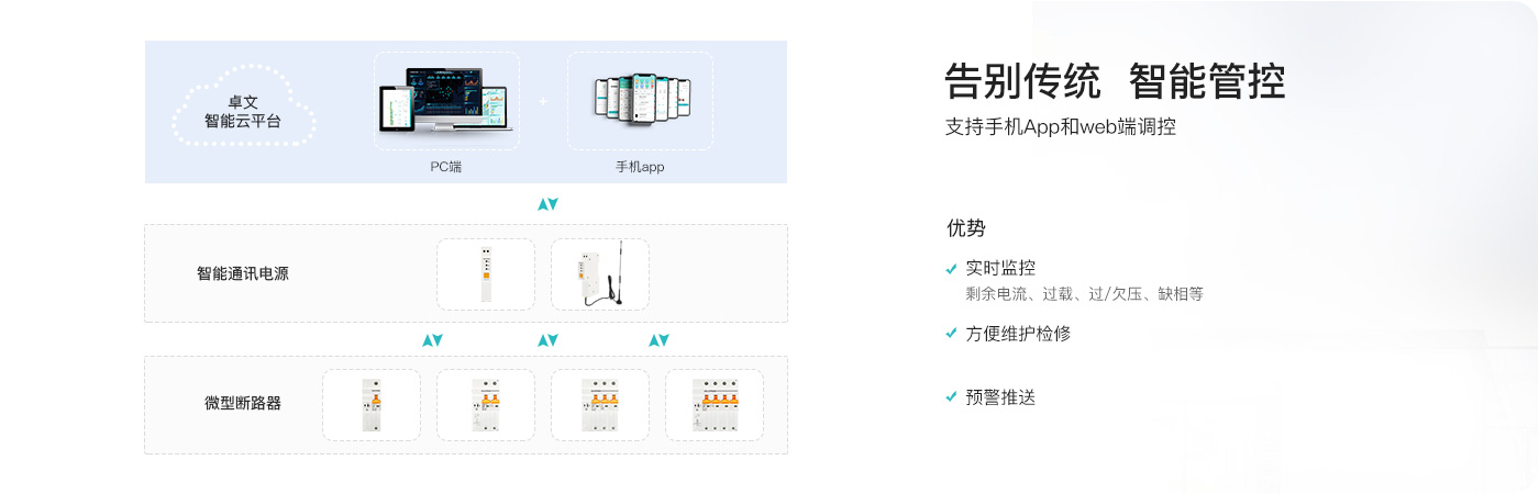 智能通讯电源设备是连接智能融合微型断路器和云端平台之间的通讯传输器,有通讯管理、数据传输、协议转换、数据处理转发等功能,是开云电竞智慧用电通信系统的心脏。智能通讯电源采集微型断路器的数据,把数据高效、安全的上传至平台,同时支持平台对设备远程控制指令下发。发挥设备物联,节能降耗,智慧化管理的作用。